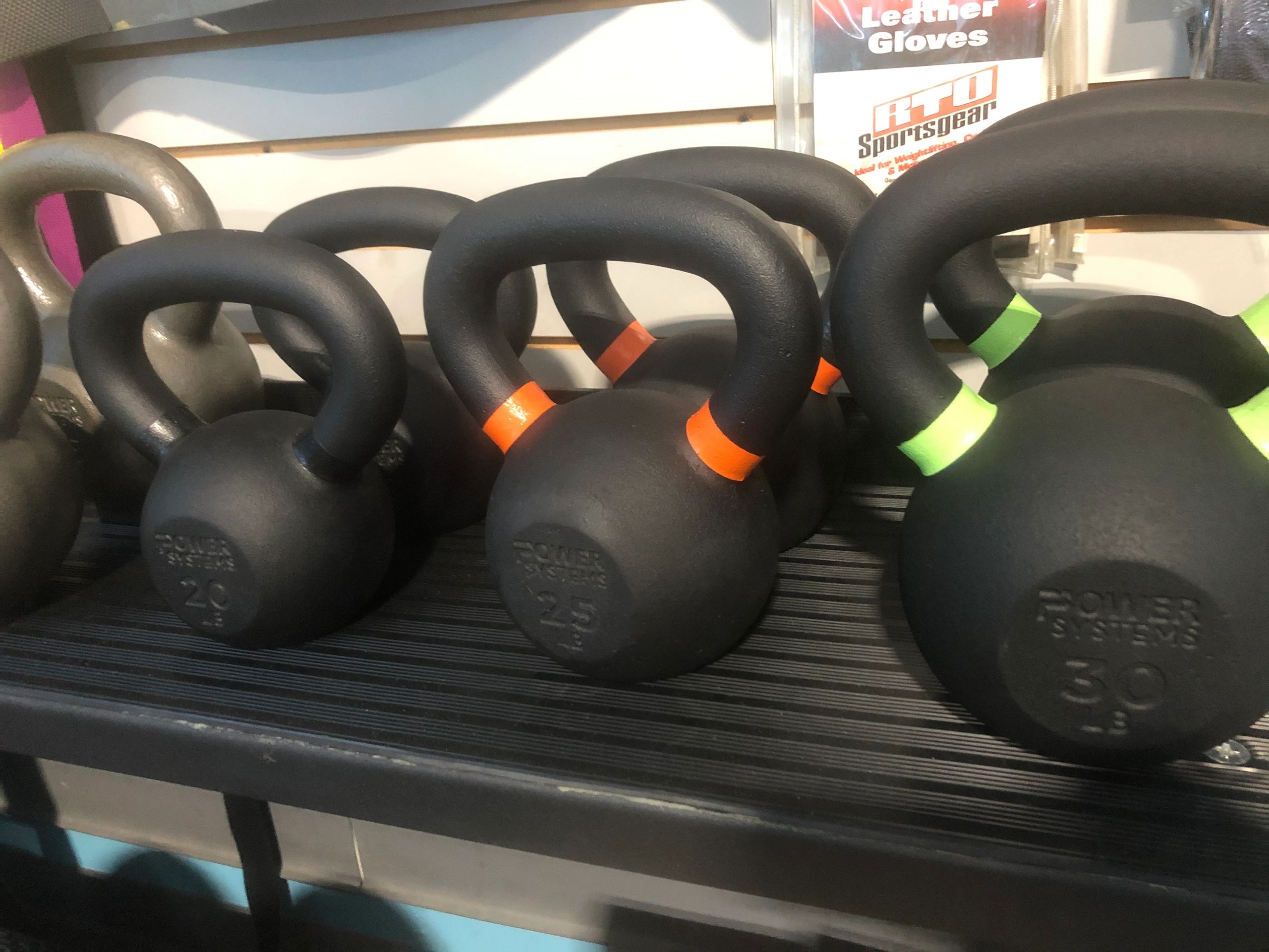 Ultra Kettlebells with rubber plate bottom to help protect flooring